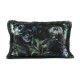 Amada 40x60cm Cushion by MM Linen - The Amada printed velvet cushion features deep blacks, greens and greys with an olive coloured fringe and plain olive velvet reverse side.