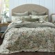 Aravelli Bedspread Set by MM Linen - Inspired by nature, birds and botanicals are intertwined upon a pale green background, with a matching plain green reverse side and binding.
