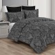 Caspian Comforter Set by Marlborough - Add instant comfort and style with this gorgeous comforter set featuring an intricate silver coloured Fleur Di Lis design on a charcoal base. Each set contains a comforter and matching pillowcases with coordinating plain dyed black European pillowcases.