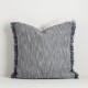 Caspian In & Outdoor Cover/Cushion by Baya - Steel Blue - Add visual interest and dimension to outdoor settings with the relaxed design of the Caspian cushion. Featuring steel-blue and ivory tones, the simple weave and two-tone fringing provides a simple, textural aesthetic for contemporary living spaces. Handwoven from soft PET yarn, this versatile piece works just as well styled indoors, especially in areas exposed to sunlight.