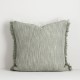 Caspian In & Outdoor Cover/Cushion by Baya - Eucalyptus - Add visual interest and dimension to outdoor settings with the relaxed design of the Caspian cushion. Featuring soft eucalyptus and ivory tones, the simple weave and two-tone fringing provides a simple, textural aesthetic for contemporary living spaces. Handwoven from soft PET yarn, this versatile piece works just as well styled indoors, especially in areas exposed to sunlight.