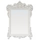 A classical ornate mirror with a distressed chalk paint and a French finish, flecks of gold colour.