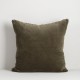 Edward Cover/Cushion by Baya - Thyme - Plush cotton velvet meets considered structure in this dusky green, box-style cushion. Framed with striped linen gussets, the Edward is a study in contrasts, balancing soft texture with architectural form. The result is a refined interplay of materials that is both luxurious and effortlessly liveable.