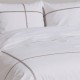 Hudson Duvet Cover Set by Seneca - Taupe - Beautiful crisp cotton white duvet set with taupe grid stitching detail.