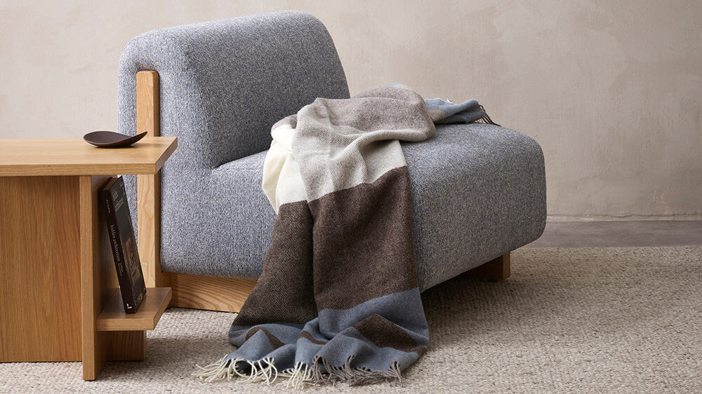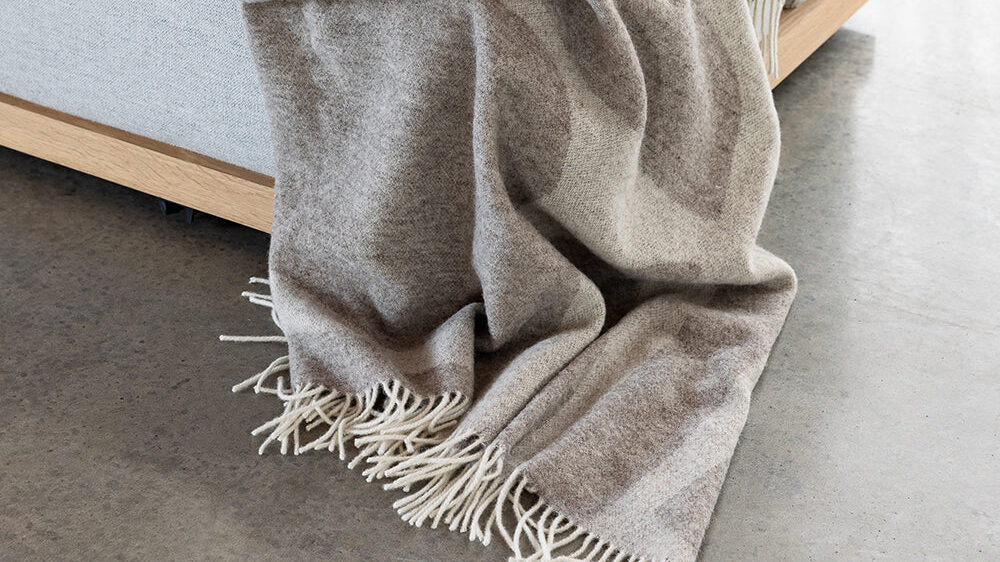Woven from soft New Zealand wool, the generous size and pebble-inspired design of the Flagstone throw adds a playful, inviting ambience to interiors. The palette of fawn and ecru is easy to style. Also crafted from New Zealand grown wool is the Brunswick Throw. The timeless design and soft tones create a reassuring sense of warmth and comfort. Available in two gorgeous new colours this season fawn and sky.