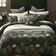 Limetta Duvet Cover Set by MM Linen - Featuring a modern repeat art work, reminiscent of a restful forest with a calming, simple palette. Limetta's soft forest green base, knife edges and an olive toned reverse side, completes the design.