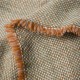 The weave reveals a coloured fleck as the spearmint and beige weft intersects with the orange and clay-coloured warp, creating a rich, dynamic design.