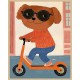 Scoooter Pup Framed Kids Wall Art - Decorate their wall with this playful pup on a scooter. Dressed in a red top and jeans on a scooter against a neutral building in the background.
