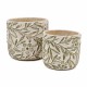 Set of 2 Etched Green Floral Planters