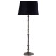Table Lamp & Black Shade - quality designed to last, and with a play on architectural design with the silver antique base and black cotton shade, this sturdy and contrasting table lamp would suit any space that needs soft illumination through a fabric shade.