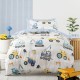 Get ready to dig, build and roll with Tool Time! Perfect for little builders who love construction site action, this cheerful design features diggers, dump trucks, cranes and bulldozers rumbling across a sandy base, bringing the fun of a busy building zone straight to their bedroom. Printed on 100% cotton, this design reverses to a blue check print.