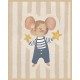 Twinkle Mouse Framed Kids Wall Art - Decorate their wall with this playful mouse with yellow stars. Dressed in a stripe top and coverall set against a neutral stripe background.